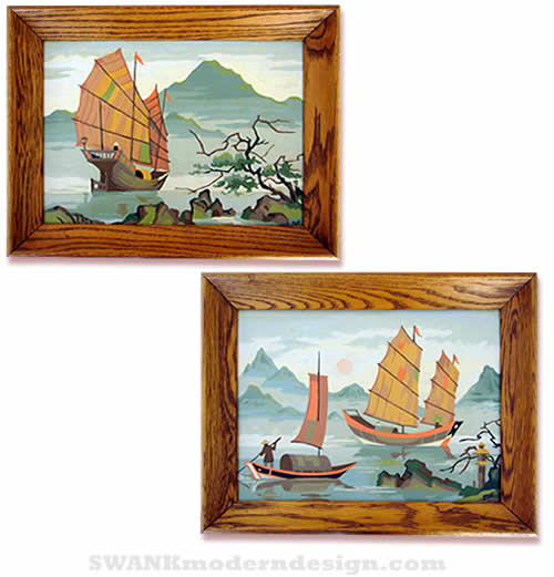 Go East! Deluxe pair of mid-century paint-by-numbers. Signed, JOH, by the "artist".