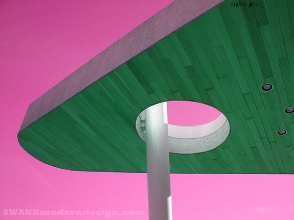 A fleeting moment in the Men's Room of Palm Spring's iconic 1963 Tramway Gas Station (currently the Palm Springs Visitors Center) by Albert Frey and Robson Chambers. Image by American artist John Goss, from his exhibition Desert Mod.