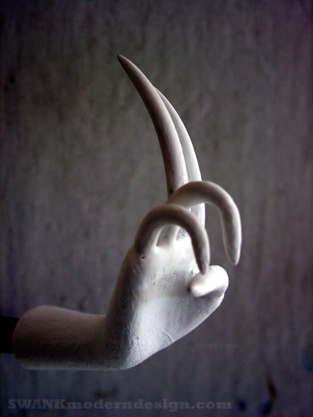 Close-up of the hand of a Thai classical puppet, by American artist John Goss.
