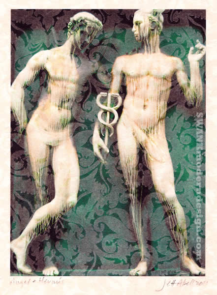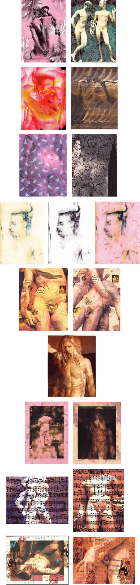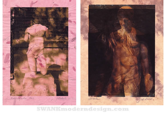 $250. Right: Greek (2008), one-of-a-kind triple monoprint on tinted paper (watermarks do not appear on print)