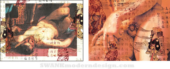 $250. Right: Gavotte Italienne, one-of-a-kind monoprint on Italian wrapping paper (watermarks do not appear on print)