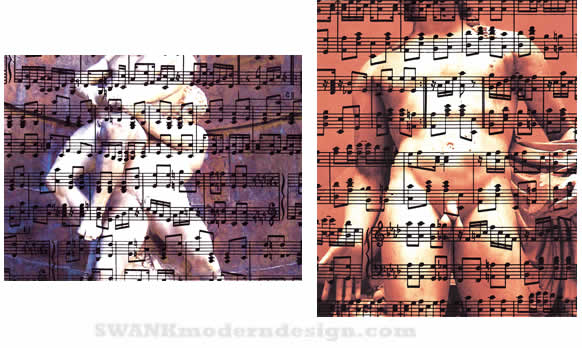 $250. Left: They're Playing Our Song, one-of-a-kind monoprint on Italian wrapping paper (watermarks do not appear on print)