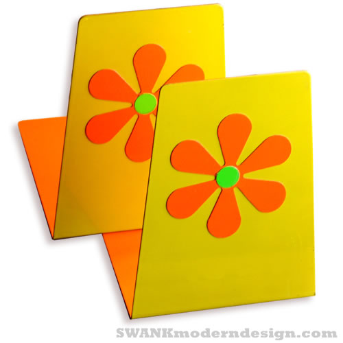 Sock it to me! These righteous, day-glo flower power bookends are ultra groovy: simple, vividly graphic and Made-in-Japan.
