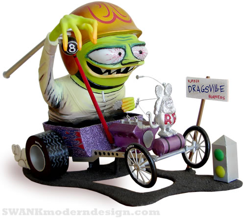 Finks unite! Ed "Big Daddy" Roth's iconic American weird-oh mascot, Rat Fink. This professional build-up of the counter-culture, custom car cousin of Mickey Mouse was given a metallic flake paint job in keeping with its roots in Southern California hot rod mods from the 60s.