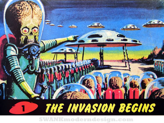 The Invasion Begins! Large repro from the much sought-after bubble gum card series that thrilled teens and ignited parent protests in 1962.