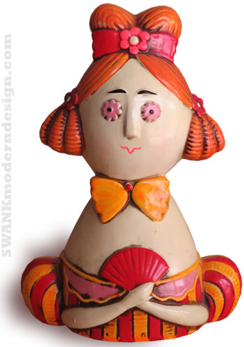 Bankable! The epitome of Pop Art's influence on mainstream American youth culture of the late 60s. This low-brow, self-referential play on art and commerce, street grunge and super-graphic hues, Duchamp and Warhol (there was a reason he collected cookie jars), perfectly reflects the mood of its times, bringing Claes Oldenberg and Jasper Johns into your kid sister's bedroom. Mass-produced, yet individually decorated, this bit of casual consumerism has become bona fide pop art in its own right.