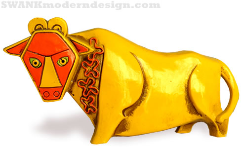 Toro! When the moon is in the second house and Venus flirts with Mars, this piece will guide your planets. Killer zodiac coin bank in the shape of Taurus the bull. Vintage groovy Summer of Love mod pop sculpt by the flower powers at Pride Creations.